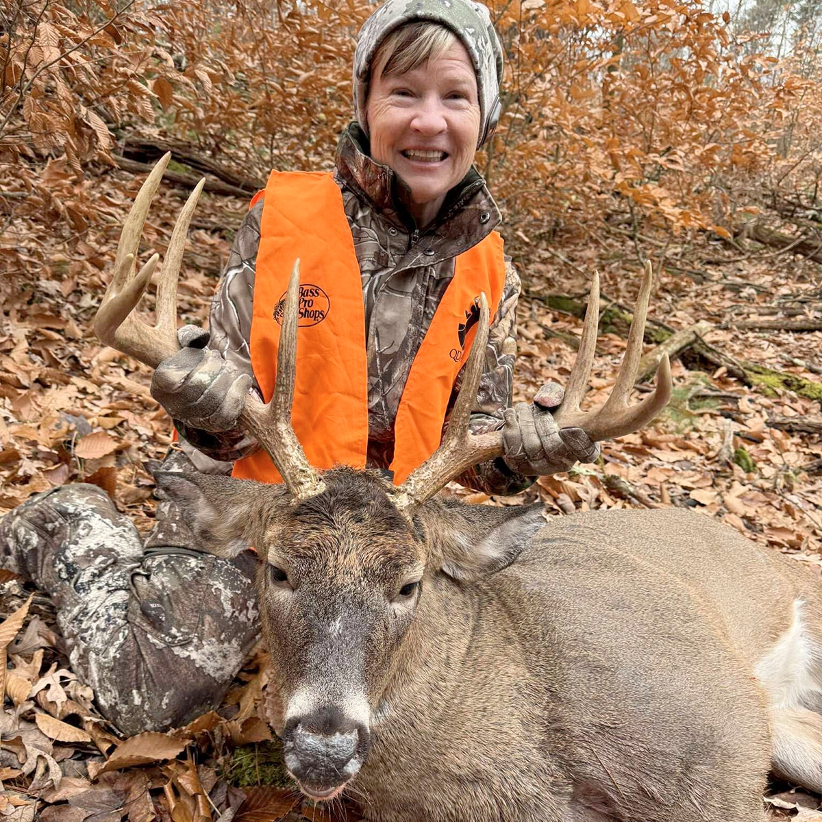 Editor’s Note: In 2019, Sandra Reulet of New York learned about the National Deer Association’s Field to Fork program through volunteers who were sharing venison samples at the Saratoga Farmer’s Market. One of the people she met there was NDA’s Senior Director of Conservation Matt Ross, who happened to be her neighbor. Sandra took her first deer, a doe, that fall on a Field to Fork hunt and has continued to hunt and find success since, taking several deer. Recently she sent Matt the photo above along with the following letter.