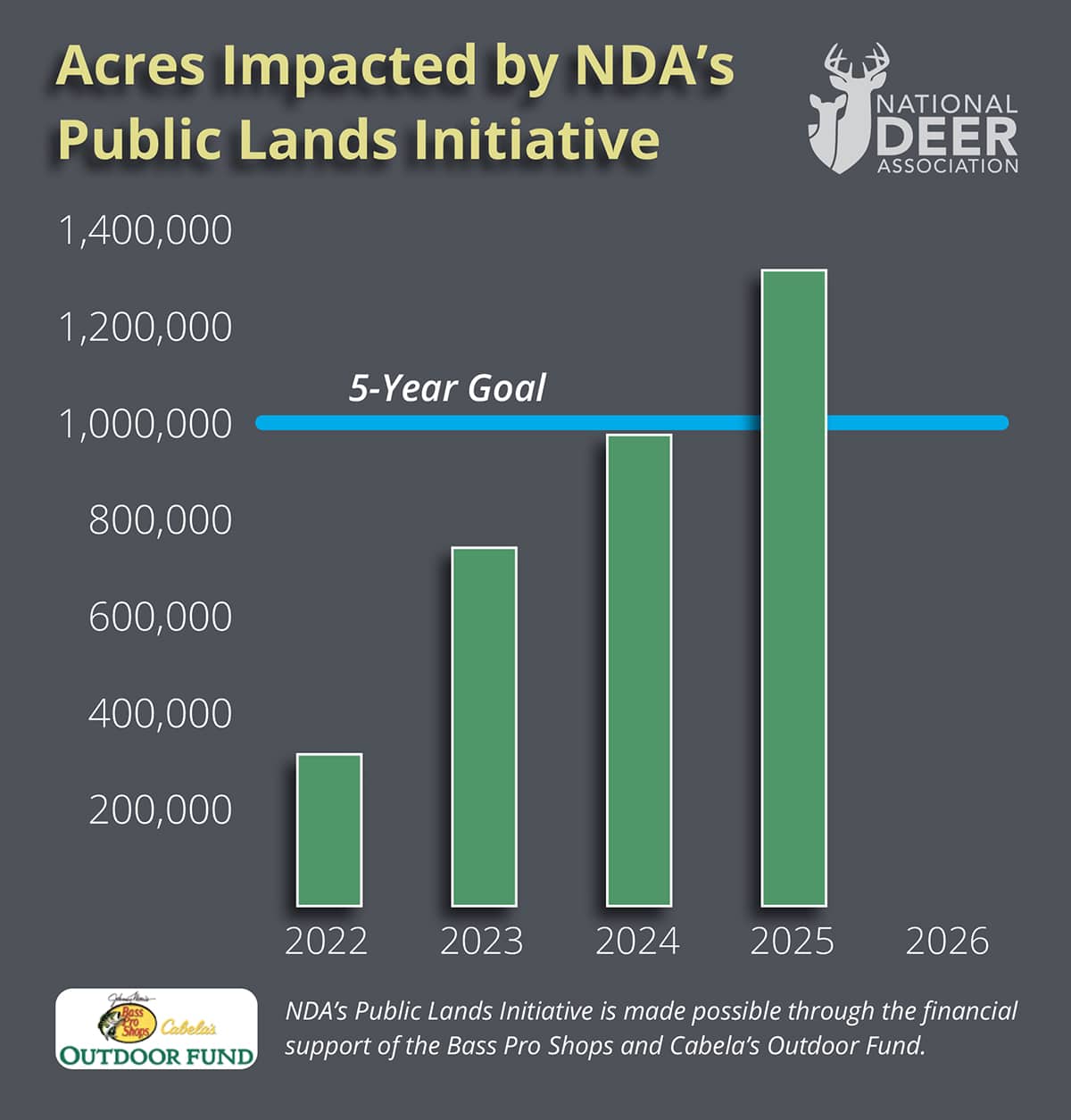 “Surpassing the Public Lands Initiative million-acre goal is a huge milestone for the NDA, and reaching it a year early is simply icing on the cake,” said Matt Ross, NDA Senior Director of Conservation. “We are proud to help deer hunters across the country, no matter where they hunt. The Public Lands Initiative is leaving a legacy of better management and hunting opportunities for all of us.”