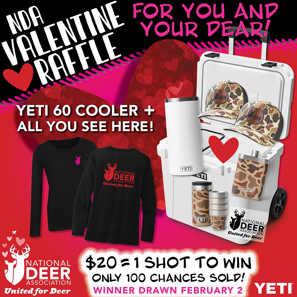 You can’t go wrong this Valentine's Day with a YETI 60 Roadie, YETI Wine Chiller, YETI Flask & Shot glasses, two NDA hats, and two custom NDA shirts. You could win all of this for you and your Valentine!